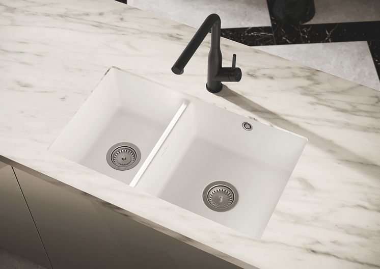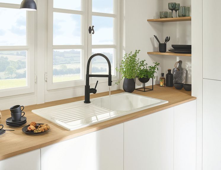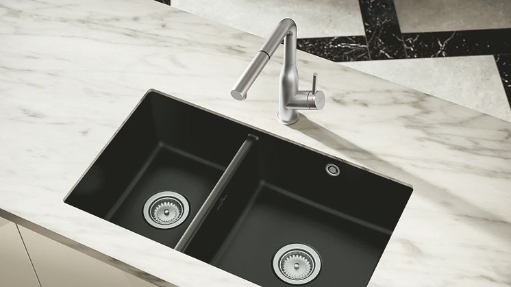 Wer der Küche mehr Impulse in Schwarz geben möchte, entscheidet sich für die neue, starke Keramikfarbe Pure Black. Der faszinierende, tiefe Schwarzton setzt jede Spüle mit einem gewissen Glamour in Szene. Egal, ob die Keramik als Unterbau, Einbau oder flächenbündig montiert ist, gleichgültig, ob aktuelles Einzelbecken, praktisch mit Ablauffläche oder traditioneller Spülstein – Pure Black betont das Design und macht im Kontrast mit Arbeitsplatten und Möbelfronten in Weiß, zartem Grau und hellen Natur- und Holztönen selbstbewusst auf sich aufmerksam.